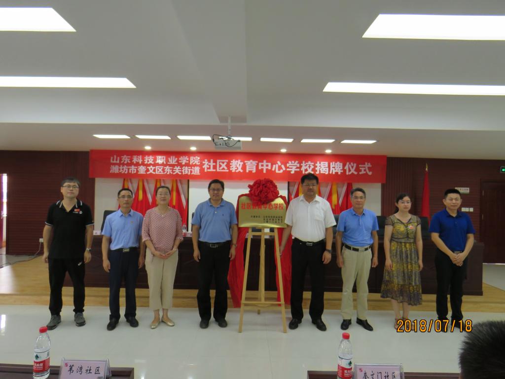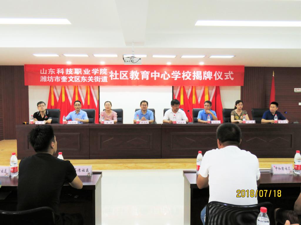 2018年7月18日上午,在苇湾社区二楼会议室举行了我院与奎文区东关街道共建“社区教育中心学校”揭牌仪式。学院副院长丁文利及bv1946伟德、继续教育与培训中心等相关人员与东关街办党工委副书记、办事处主任尹昌洲同志、东关街道党工委委员戴洪江同志以及各社区书记、主任共同出席了揭牌仪式。仪式由东关街办党工委委员戴洪江同志主持。