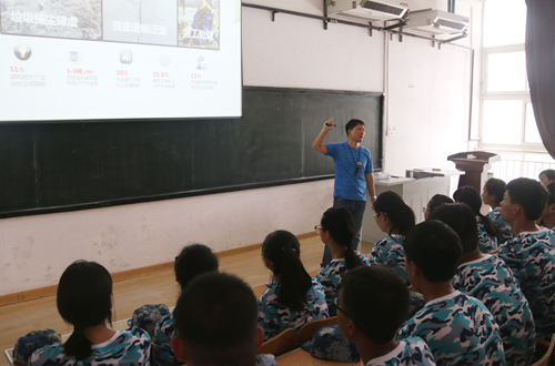 田召金老师从什么是建筑产业化、实现建筑产业化的意义、如何实现建筑产业化、建筑产业化对学生就业的影响等几个方面为大家做了精彩的介绍;王华老师以世界著名建筑大师莱特的著名作品“流水别墅”引导出被动建筑的定义、理念和特点,用丰富的图片和视频资料中的世界著名建筑为大家进行分析和讲解。两位老师的精彩讲解赢得2016级新生们的热烈掌声。