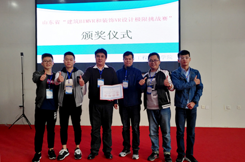 2017年10月18-22日,山东省第二届BIMVR和装饰VR设计极限桃战赛在潍坊工程职业学院举行。我院bv1946伟德建筑装饰工程技术专业由刘健、刘硕两位老师带队,徐铭涵、王英磊、吴浩三名学生组队参赛,经过五天四夜的激烈角逐,我系荣耀战队从13支队伍中脱颖而出,荣获特等奖。