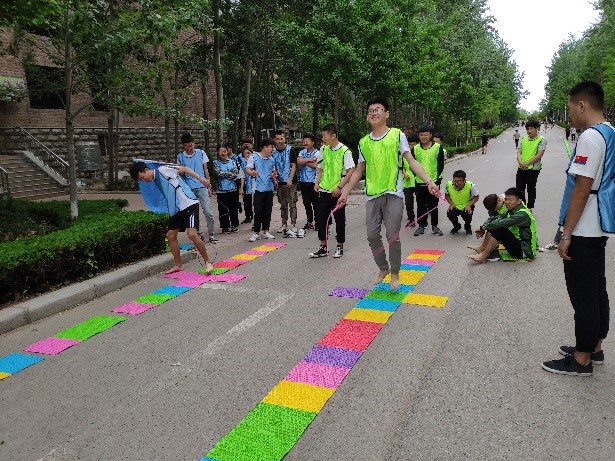 拓展活动上,同学们各队建立分组,大家通过教练的要求迅速组建成两队,并形成了自己的队名、队旗、队歌和口号,,并依次完成风采展示,活动氛围浓厚热烈,师生精神昂扬奋进,通过《装配未来》《激情挑战》《虎口脱险》《生命动力圈》等拓展环节,通过拓展活动让学生感悟到:只要确定目标,坚持不懈,就一定会到达成功地彼岸;团队的力量是无尽的,只有发挥团队每一个人的力量,才能众志成城取得成功;荣誉的价值、集体的力量、责任的担当,只有我们以正确的价值观为引领,尽责担当才能够取得成功;团结是力量的源泉,团队是成功的载体,只有集聚众志,个人融入集体才能够取得成功。